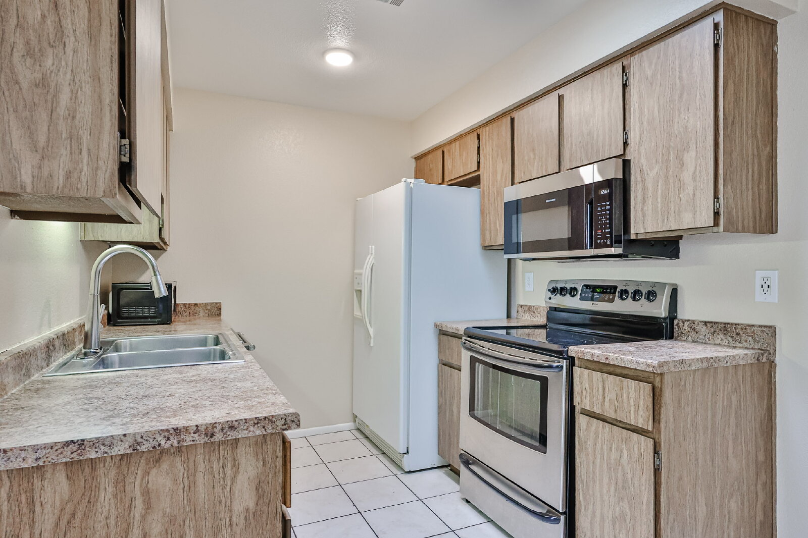 Nestled in a thriving gated community, this 2-bedroom, 2-full bath sanctuary spans 863 square feet, providing an intimate yet spacious living experience. Kitchen comes complete with fridge, stove, dishwasher and brand new microwave. Prime Location, next to State Farm Stadium. Washer and dryer included. Water, Sewer and Trash included in rent.