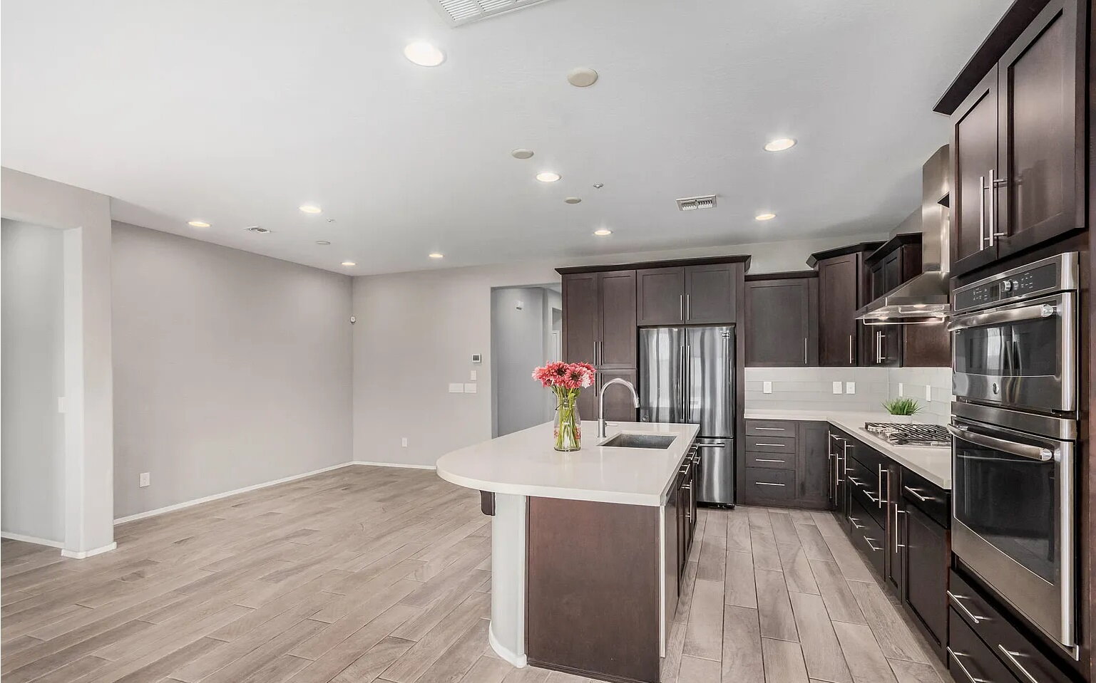 Large 3 Bedroom + Den + 2 Bathroom Home in Peoria. Beautiful Flooring through-out. No carpet. Kitchen features stainless steel appliances, center island and lots of cabinet space. Big open windows for natural lighting and ceiling fan in the living room. Bathroom has large walk-in shower and dual sinks. Washer and Dryer included. Community Center w/Pool & Workout Facility