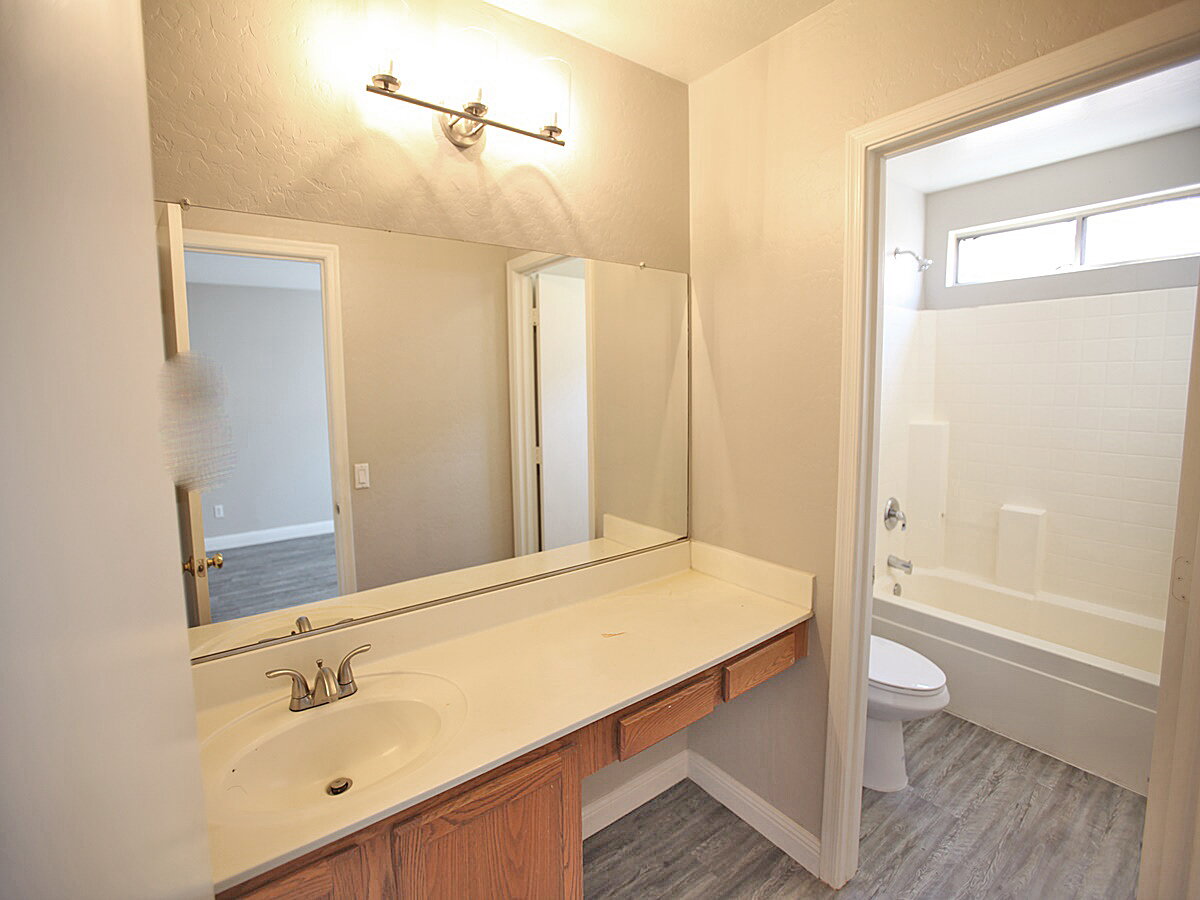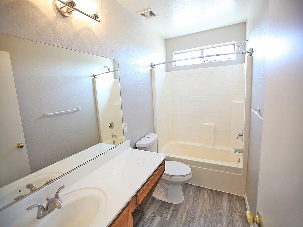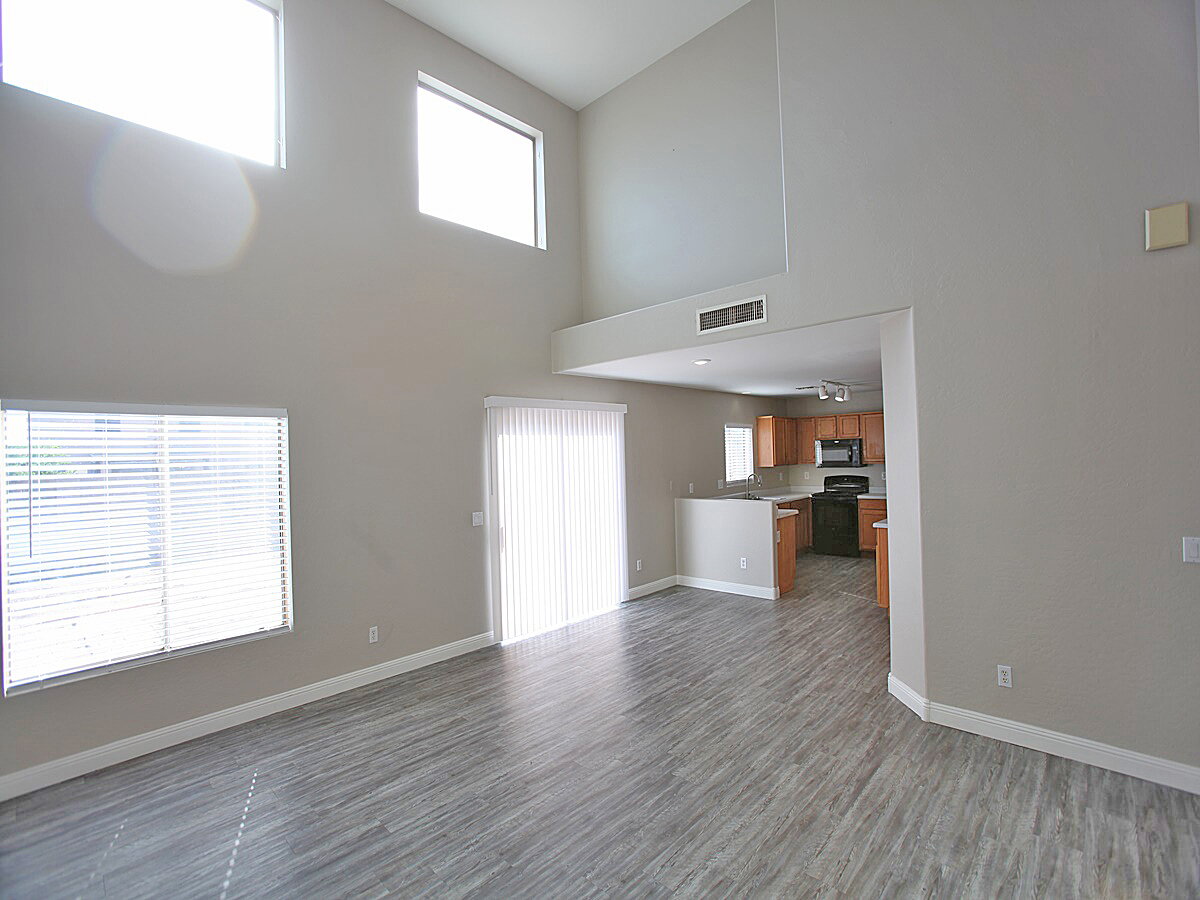 4 Bedroom + 2.5 Bathroom with vaulted ceilings and lots of windows. Kitchen features Range/stove, dishwasher, built-in microwave, pantry and eat in dining. Large living room features vaulted ceiling and lots of natural light. Laminate vinyl plank flooring and carpet.