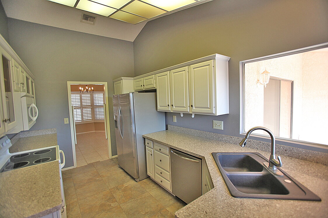 Cozy 2 Bedroom + 2 Bathroom Home in Sun City West. **Age restricted 55+ community**. Large family room with vaulted ceilings, dining room. Kitchen features breakfast nook, granite counter tops, all appliances; refrigerator, range/oven, built in microwave and dishwasher. Ceiling fans throughout. Master suite features dual sinks and walk in closet. Washer and dryer are also included! Backyard features covered patio and easy to maintain landscaping. Sun City West is an adult 55+ community with access to swimming pools, recreation centers, spa, golfing, etc.