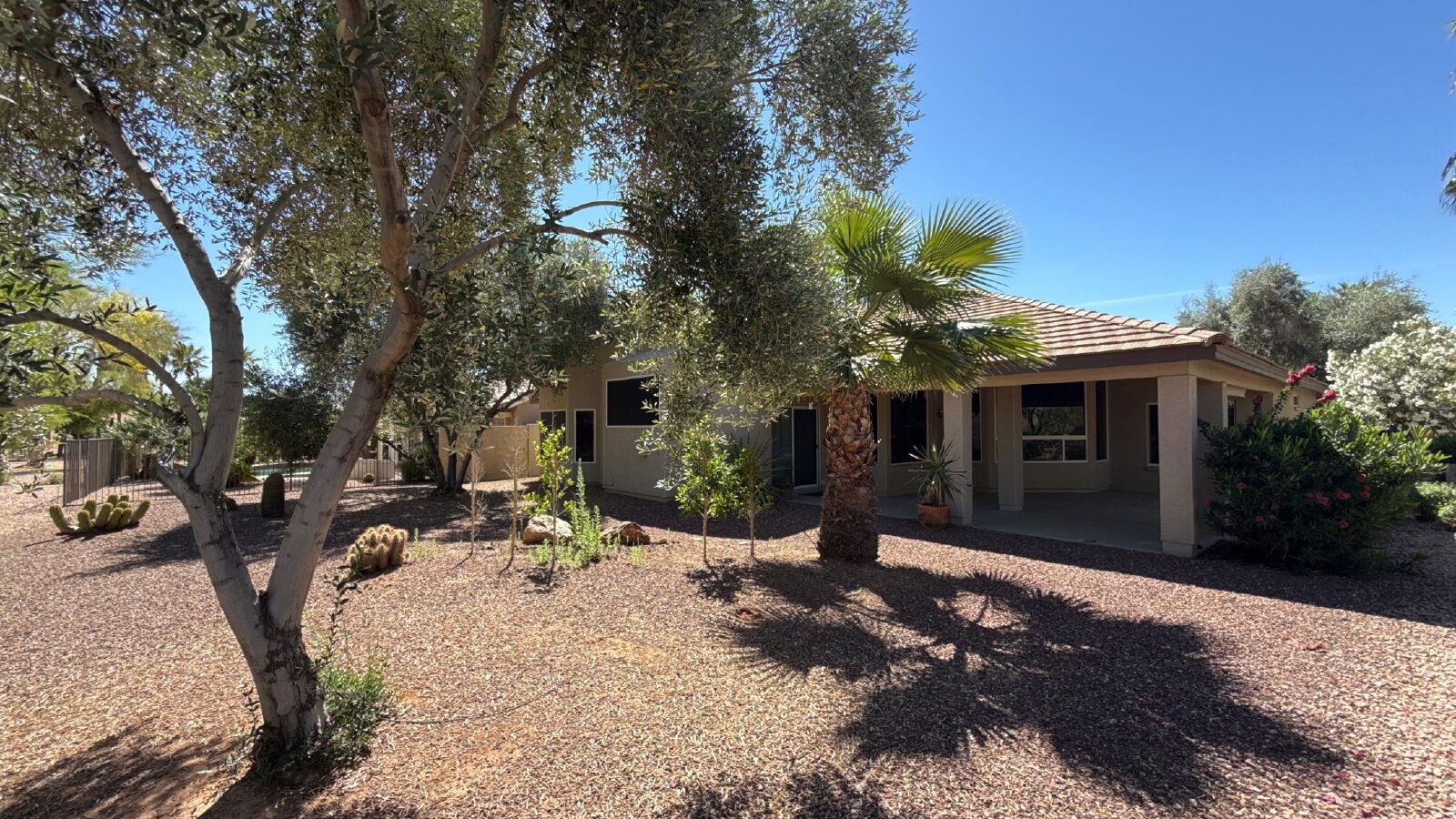 2 Bedroom + 2 Bathroom . Kitchen features all appliances including refrigerator, range/stove and dishwasher and center island. Open floor plans leads from the kitchen to a large living room with a fireplace. Large windows and blinds throughout. Primary suite includes a walk in closet, separate shower and large tub & dual vanities. Washer and Dryer included. Covered patio leads to large grass backyard. 2 car garage