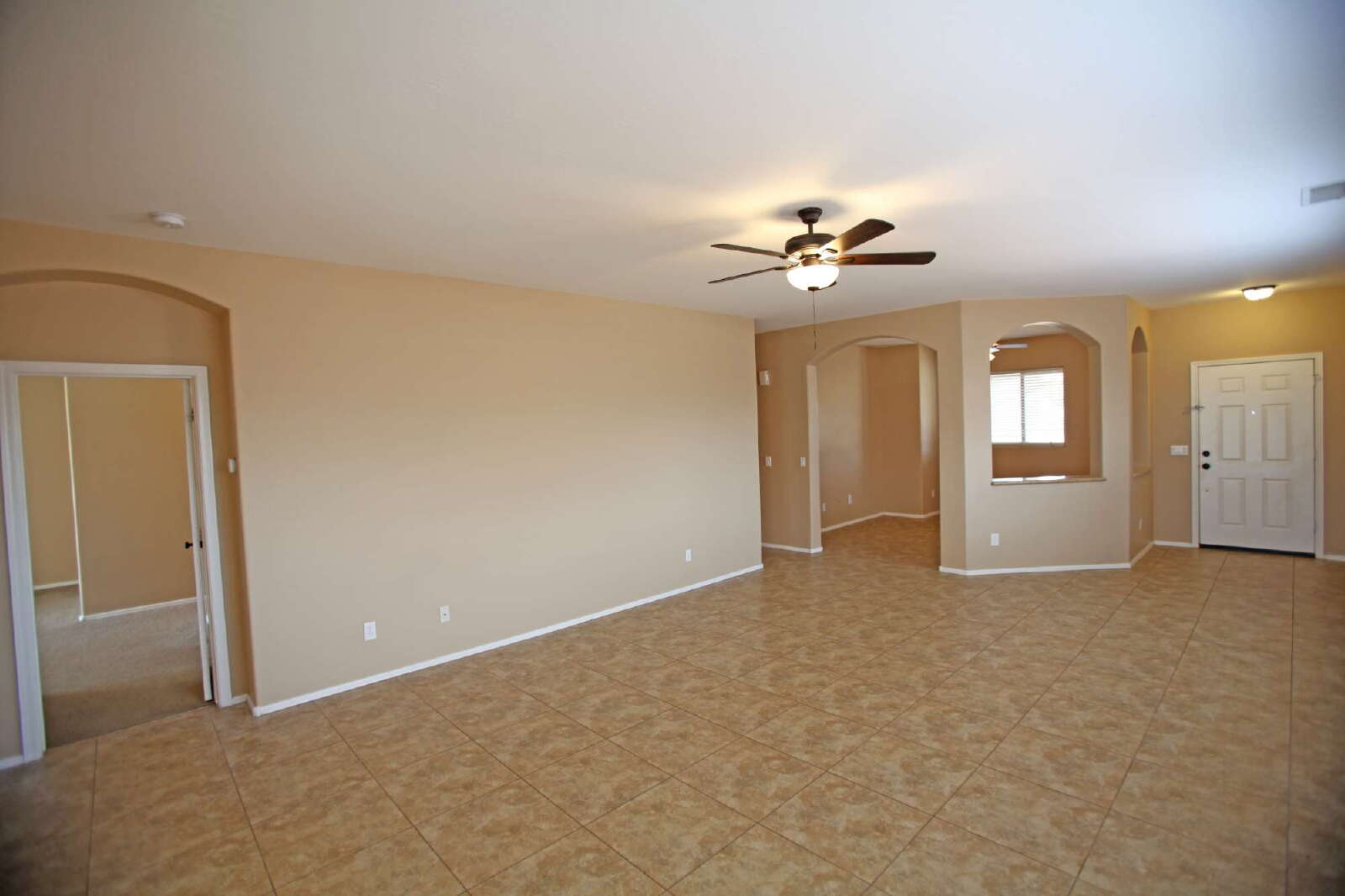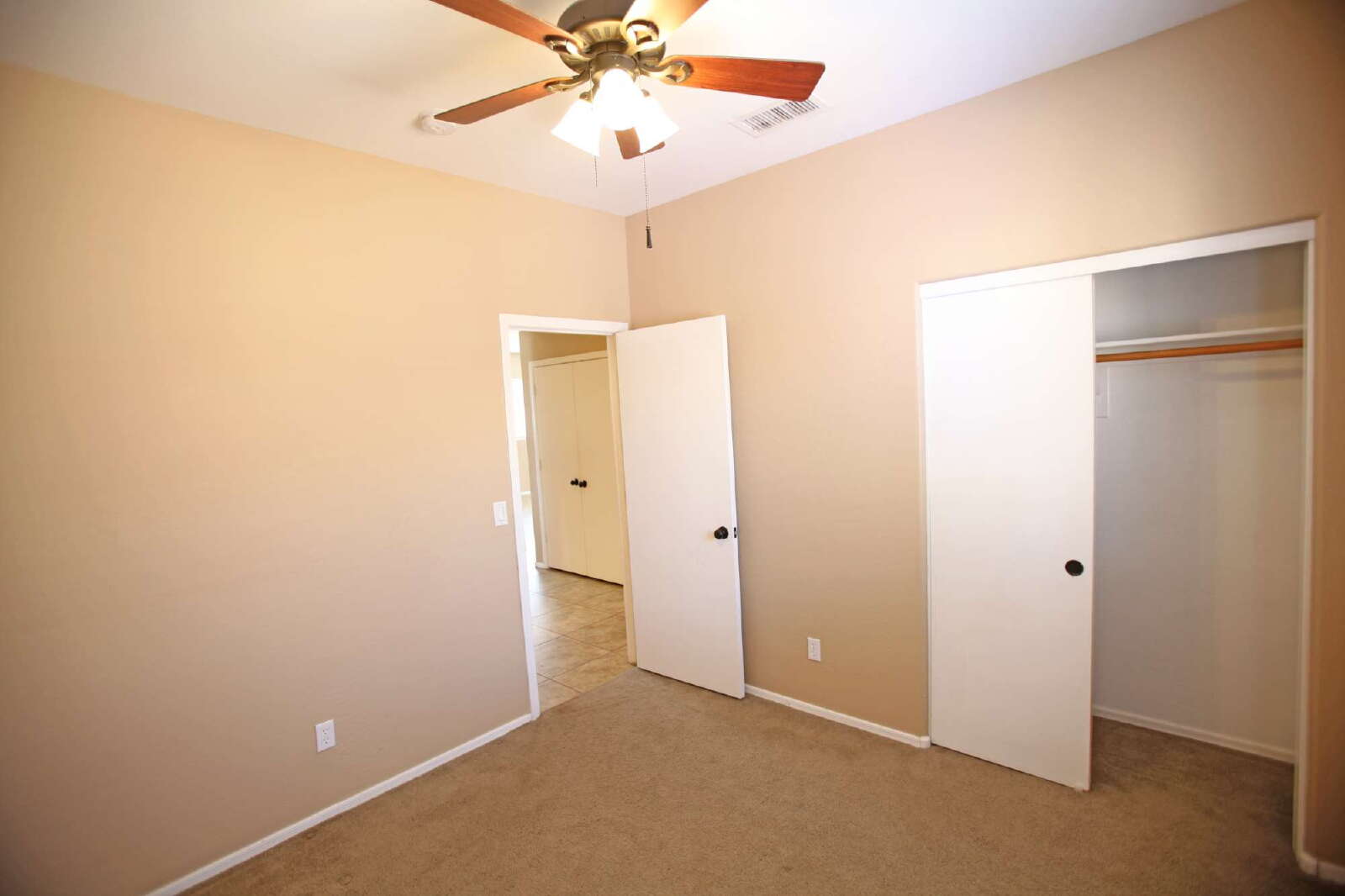 Kitchen features granite counter tops, all stainless steel appliances. Lots of cabinet space. Carpet and tile in all the right places. Primary suite features dual sinks and big closet! Large backyard has a covered patio. Washer and Dryer also included!! Owner approval on pets