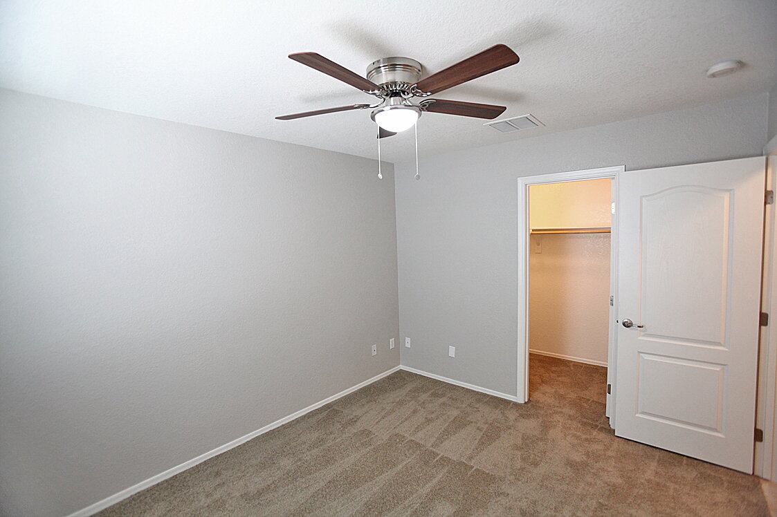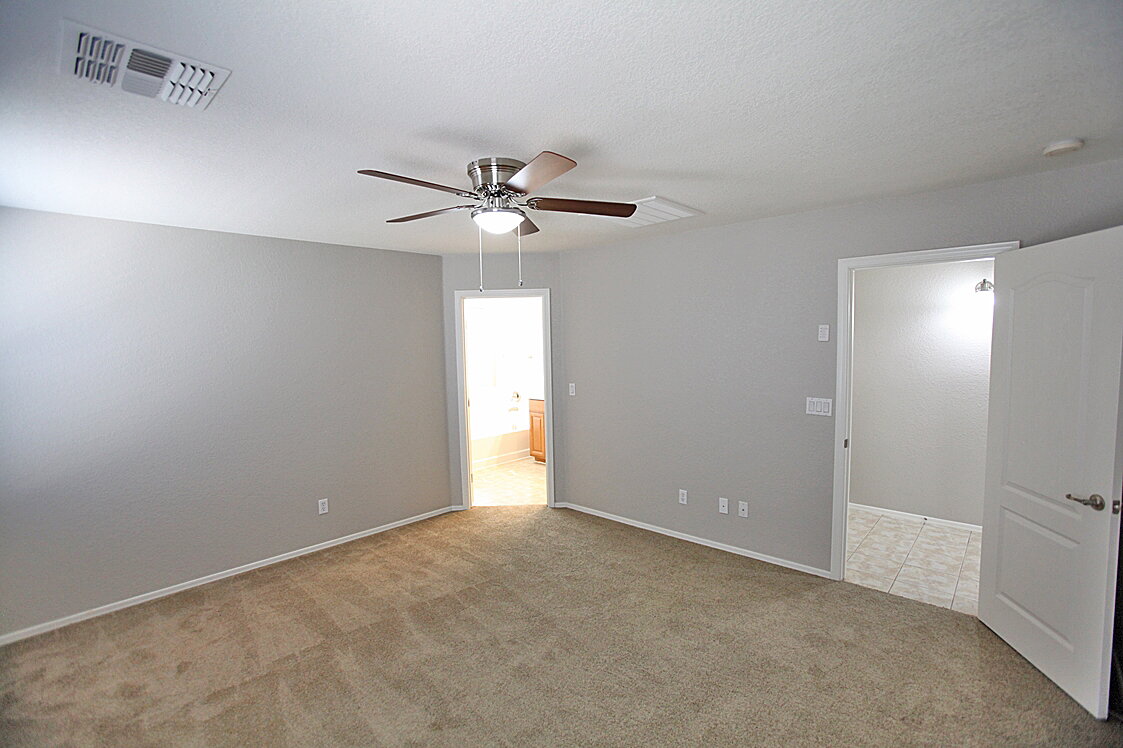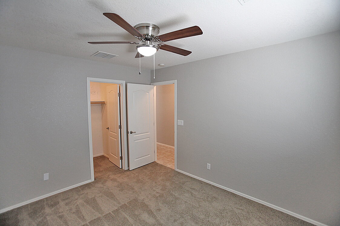 Kitchen features all appliances - refrigerator, range/oven, built-in microwave and dishwasher. Master Bedroom is split from the others and has the separate shower, garden tub, dual sinks, and large walk in closet. Two bedrooms in hallway by bathroom and laundry room, then 4th bedroom with walk in closet at front of home makes for a great separate space. Formal living / Dining room. Beautiful backyard with grassy area.