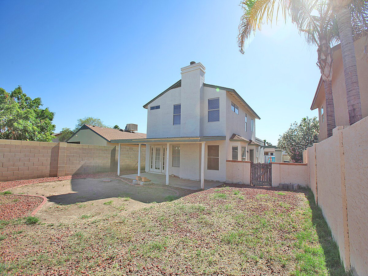 3-bedroom, 2.5-bathroom home located right off Loop 101 and near Midwestern University, offers the perfect blend of comfort and convenience. Step into the cozy family room, where a charming fireplace is. The well-equipped kitchen, complete with all appliances, opens to a versatile living room. Upstairs there are three spacious bedrooms. Outside, the driveway has extra slab parking. Challenge friends on your built-in basketball hoop or relax in the cute sitting area by the front door.