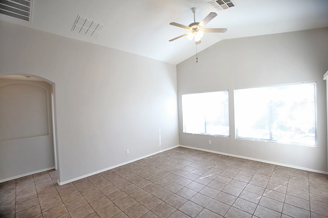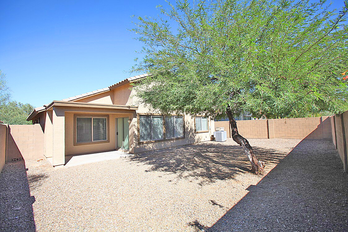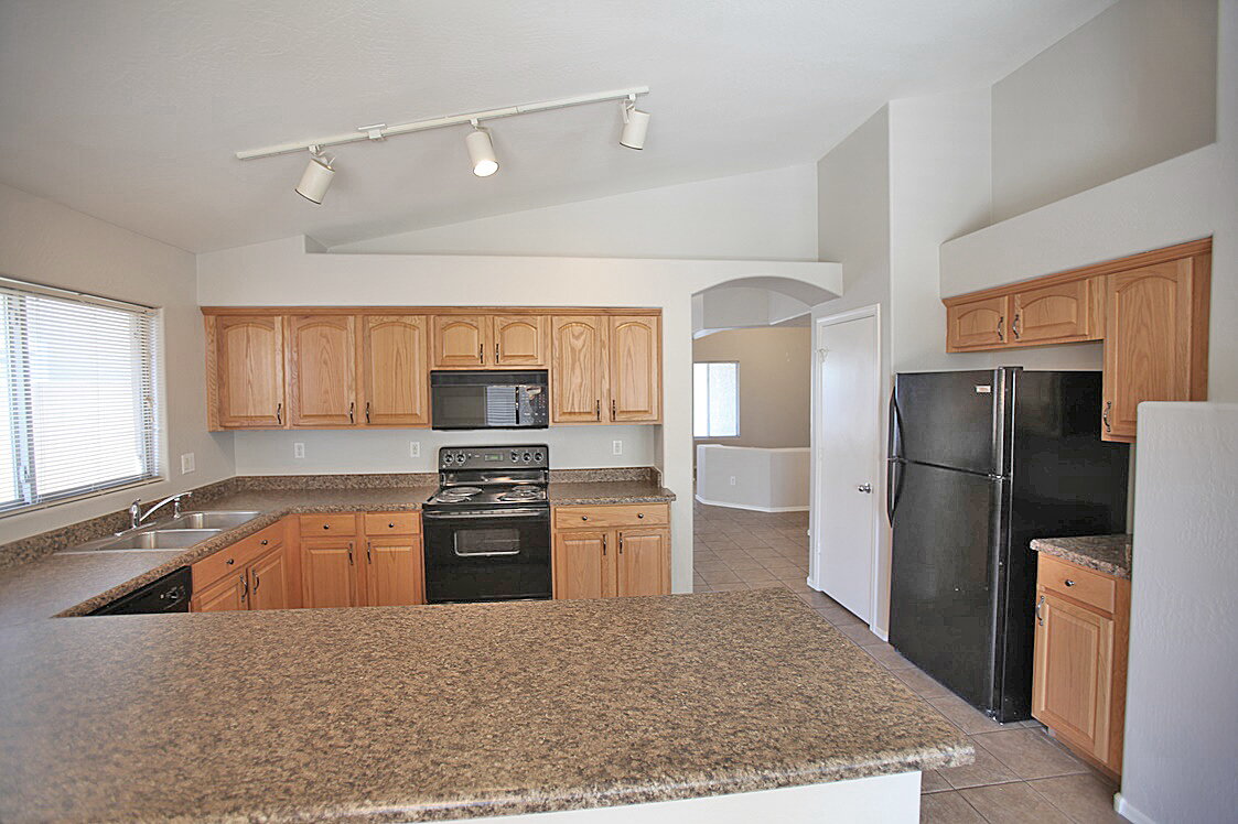 3 Bedroom + 2 Bathroom house with open floor plan and a den. Kitchen features, all appliances, including built in microwave, stove/range, dishwasher and refrigerator, a large island and lots of cabinet space. Blinds throughout. Master suite includes a walk in closet, dual sinks, shower/tub combo and a private toilet room. Covered patio, easy to maintain landscaping!