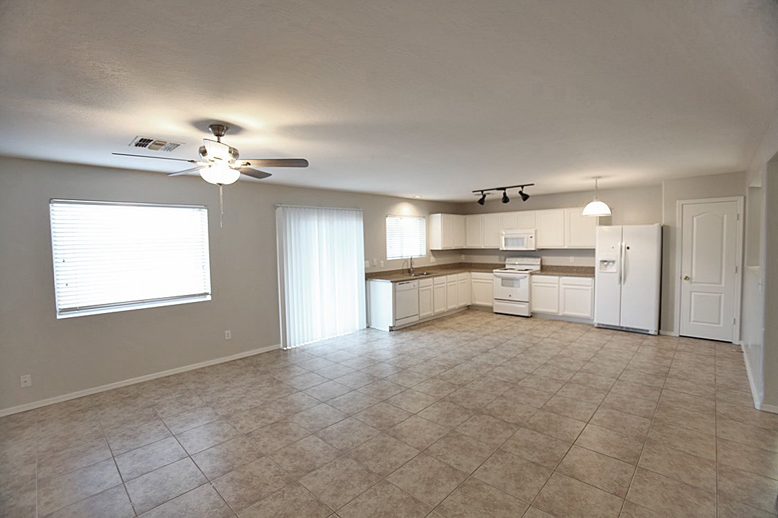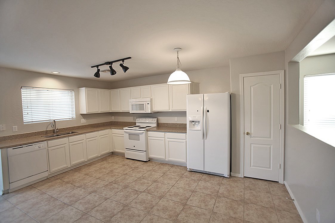 **ALL KITCHEN APPLIANCES** 3 Bedroom + 2.5 Bathroom + Loft in Buckeye. Kitchen features all appliances including a built in microwave, stove/range, dishwasher and refrigerator and refinished cabinets. Open floor plan with large living and dining room. Large loft area. Ceiling fans and blinds. Master suite includes walk in closet, separate tub and shower and dual sinks. Covered patio and large back yard. 2 car garage.