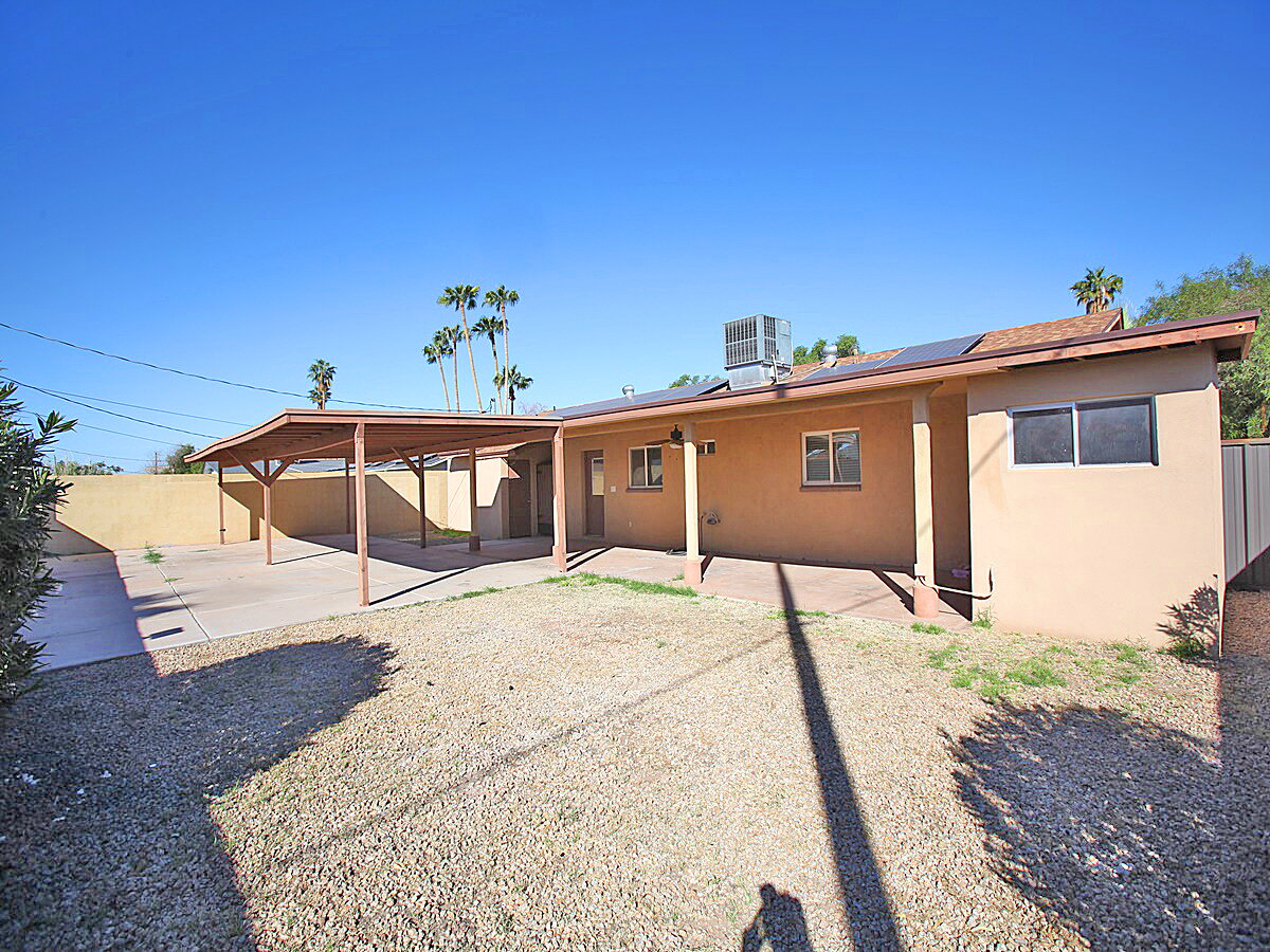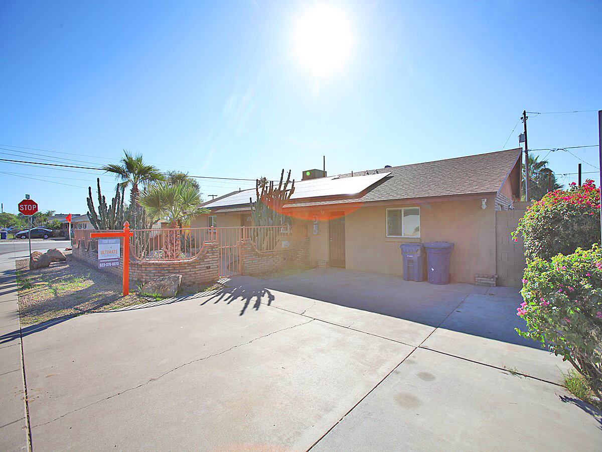 Updated 5 bedroom + 5 bathroom home located near ASU! There are 3 bedrooms in the main building and 2 additional bedrooms in the exterior building. Each bedroom has its own bathroom with a shower and a walk in closet! Kitchen features granite counter tops, refrigerator, range/oven, built-in microwave and dishwasher. Washer and dryer are also included. **HOME HAS SOLAR PANELS - MAJOR SAVINGS ON ELECTRICITY!** Covered patio in the backyard and covered parking located in the backyard with electrical gate. Easy to maintain landscaping. Located just minutes from ASU and Mill Ave in Tempe!