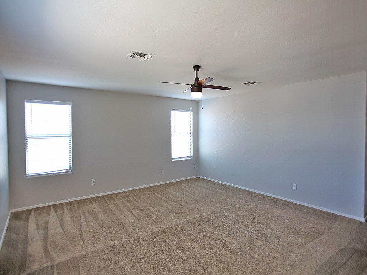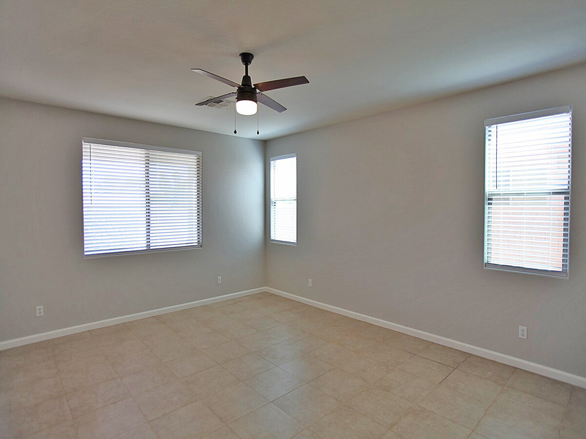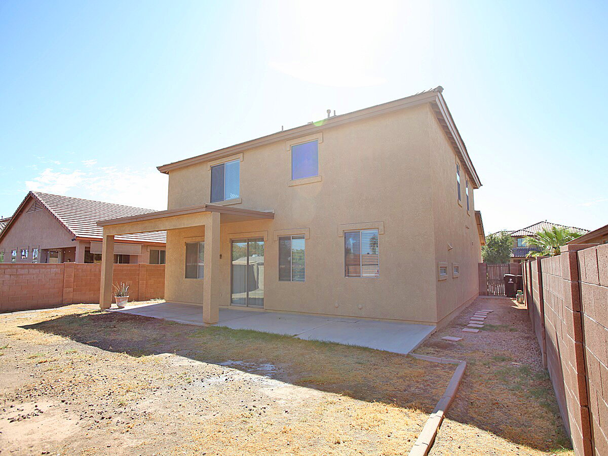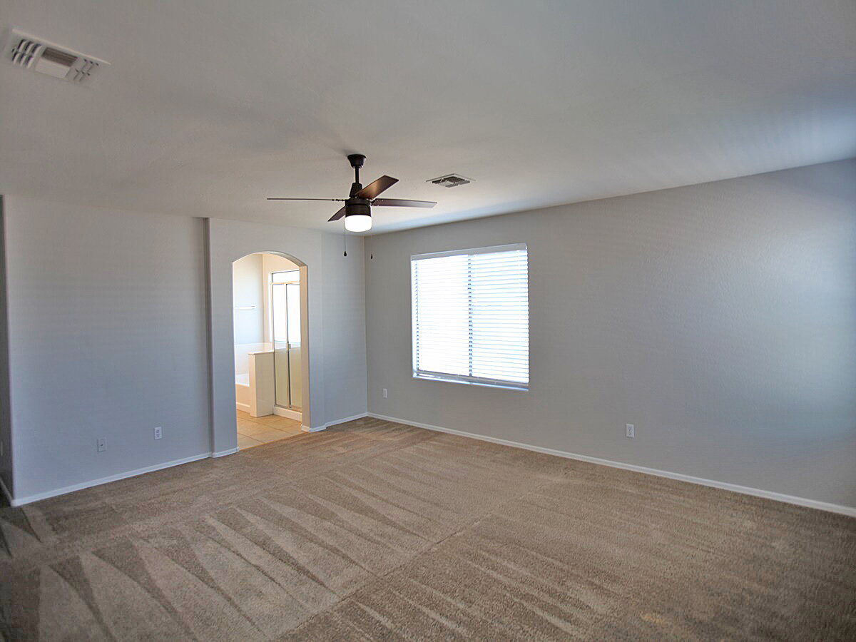 4 Bedroom + 3 Bathroom + Den home in Peoria. Living room features tall ceilings with lots of windows for that natural light. Kitchen features an island, desk, lots of cabinet space, range/oven, dishwasher, fridge, and microwave. Sliding glass door to backyard. Huge primary suite features dual sinks, separate tub and shower, and walk-in closet. Backyard has a covered patio and easy to maintain landscaping. 3 Car garage