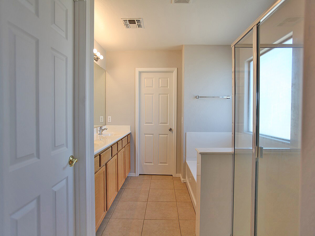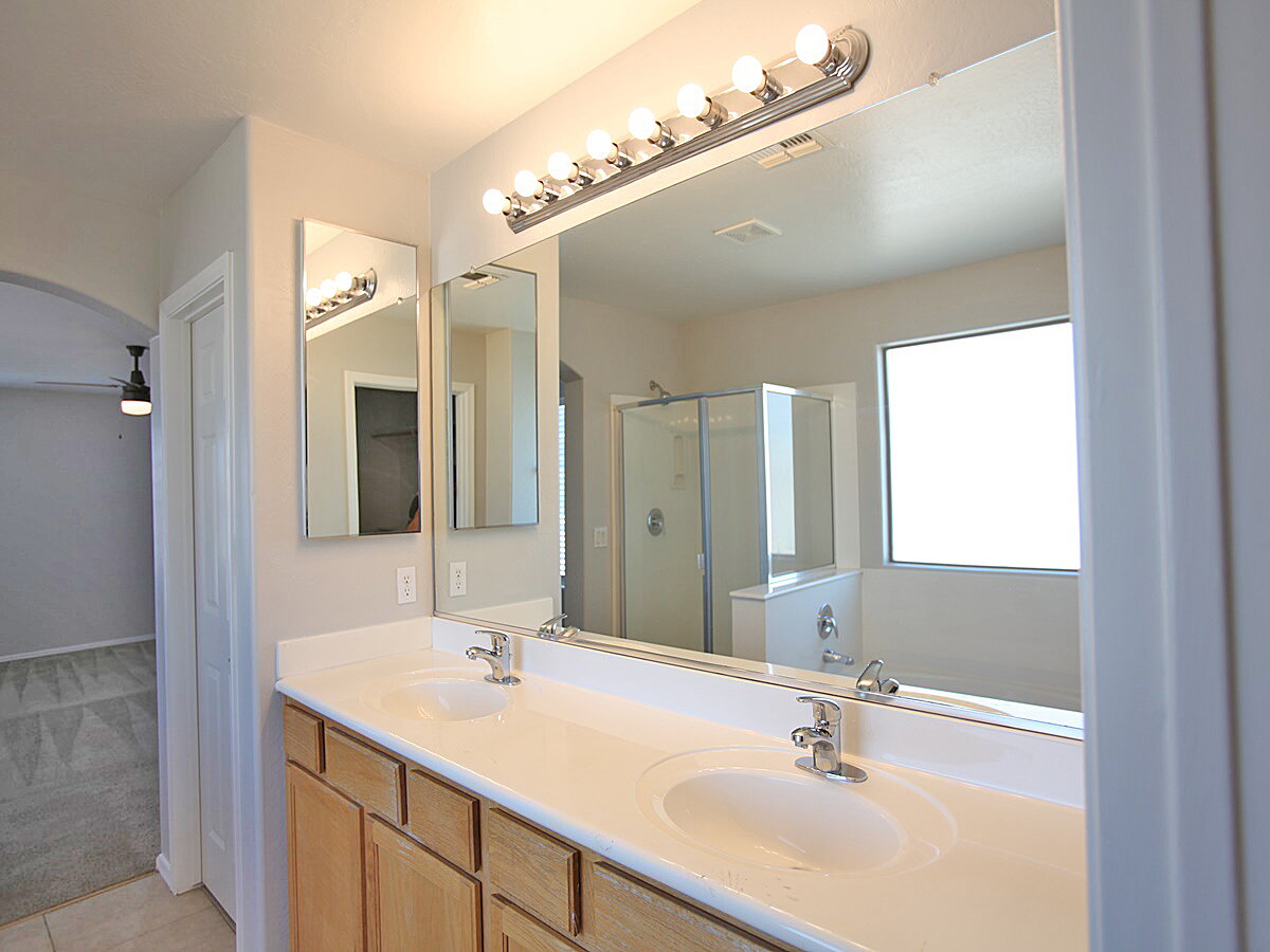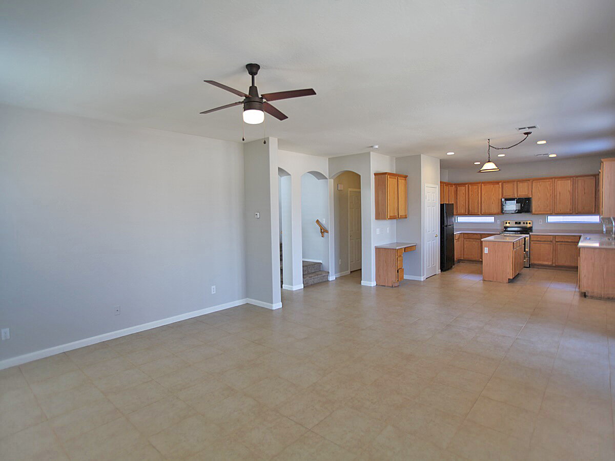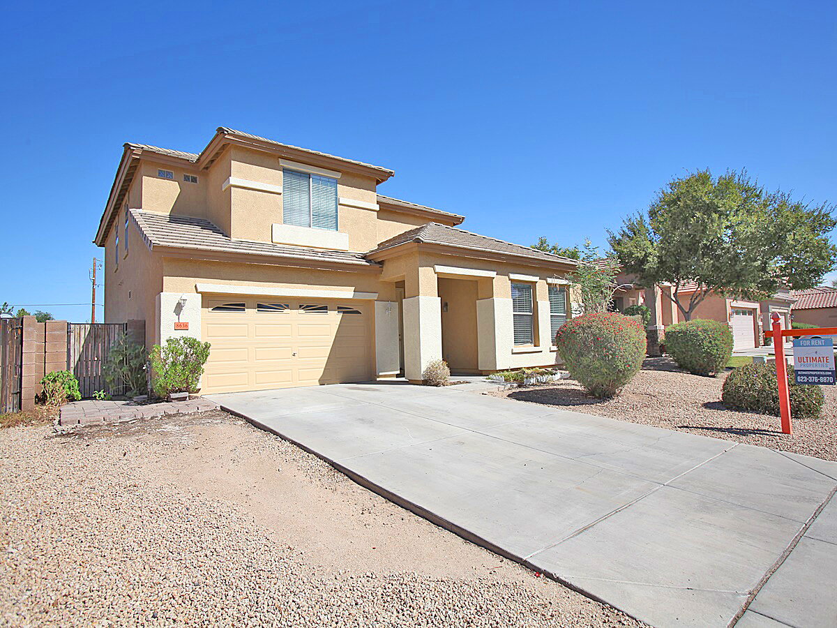4 Bedroom + 3 Bathroom + Den home in Peoria. Living room features tall ceilings with lots of windows for that natural light. Kitchen features an island, desk, lots of cabinet space, range/oven, dishwasher, fridge, and microwave. Sliding glass door to backyard. Huge primary suite features dual sinks, separate tub and shower, and walk-in closet. Backyard has a covered patio and easy to maintain landscaping. 3 Car garage