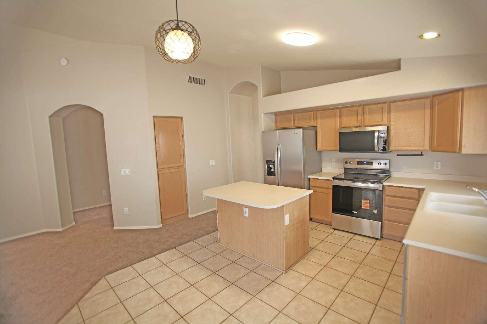 Great 3 bedroom, 2 bathroom home with a two car garage! Spacious living room with vaulted ceilings, tile, carpet flooring & neutral color palette. The open kitchen comes complete with stainless steel appliances including stove/oven, refrigerator, dishwasher, pantry, & breakfast bar. The master bedroom features a walk-in closet, private bathroom with a separate shower/tub plus a dual sink vanity. The large fenced-in backyard features a covered patio, and desert landscaping. This home is conveniently located near shopping locations, restaurants, golf courses, & the AZ Highway 101!
