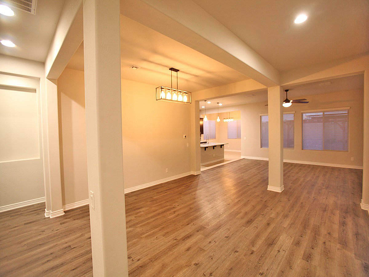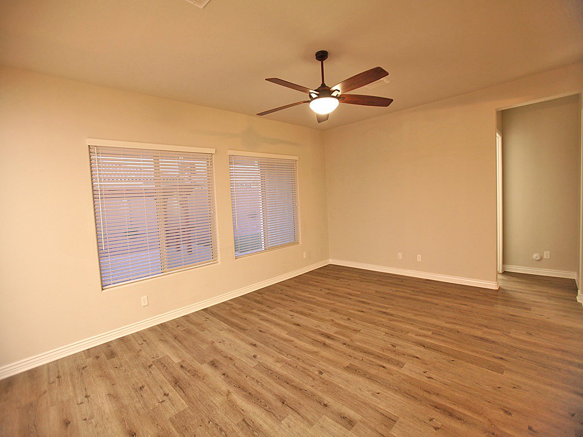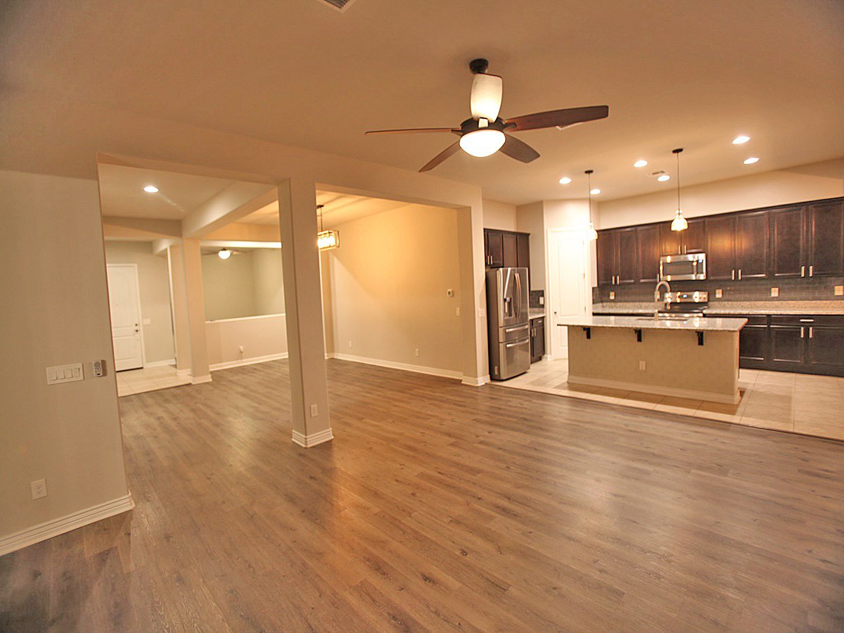 Beautiful, move-in ready 3-bedroom home with all appliances included! This well-maintained property features extensive upgrades throughout. The modern kitchen showcases stainless steel appliances, a spacious island, and granite countertops. The home boasts durable tile and plank flooring throughout - no carpet! Ceiling fans in every room provide comfort and energy efficiency. Enjoy the low-maintenance backyard featuring artificial turf and attractive paver hardscaping. Schedule your viewing today before this gem is gone!